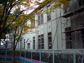 既に校舎の半分は塗りなおしが終わっていたが、足場はまだ残っていた。