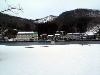 さすがに木崎湖はまだ雪の季節のようである。