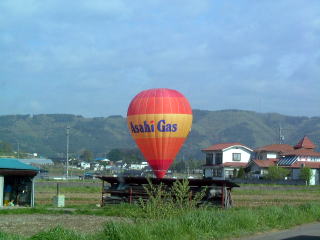 浅科の道の駅で休んでいた客も、その熱気球みたさに道路脇まででていた。