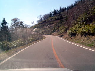 このへんの区間は、春の開通直後に雪の回廊を見ることができ、取材時の5月初旬でもまだ雪が残っていた。