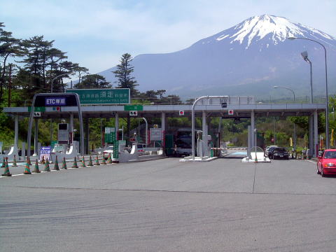 東富士五湖道路須走料金所。背後に富士山が見える。